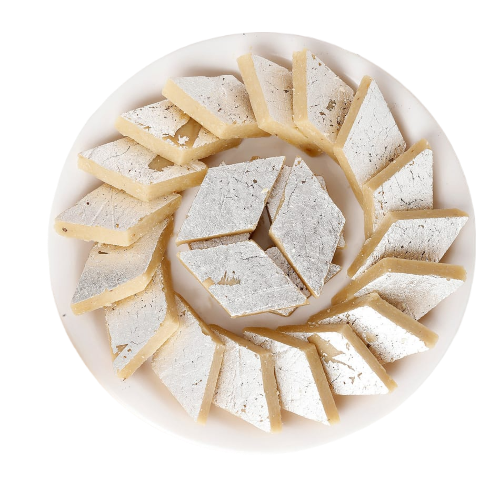 Kaju katli is a cookie-like Indian sweet made from a dough consisting largely of ground cashew nuts.