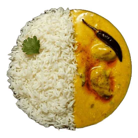Kadhi chawal is a popular dish originating from South Asia. Kadhi is prepared by mixing Curd, Besan and different spices. It usually has a thick consistency and contains fritters.